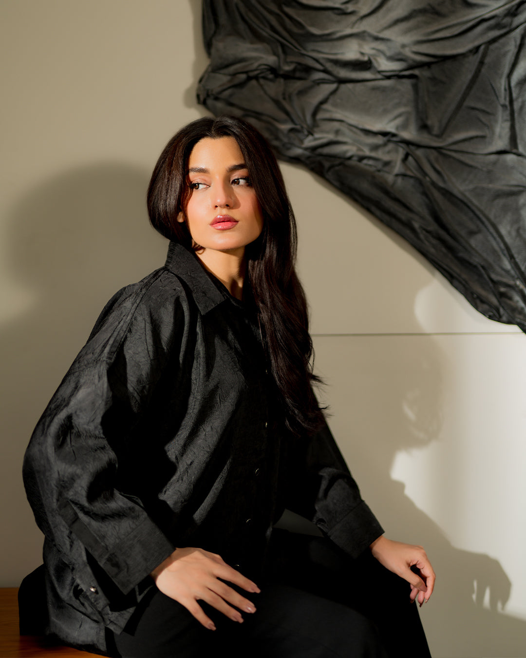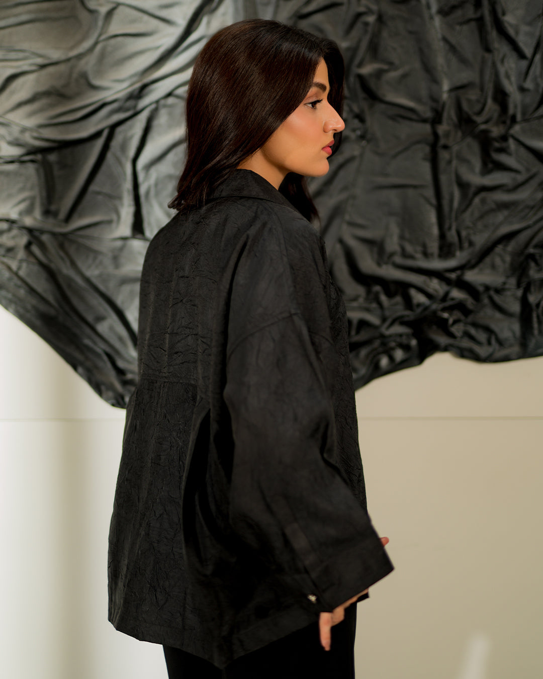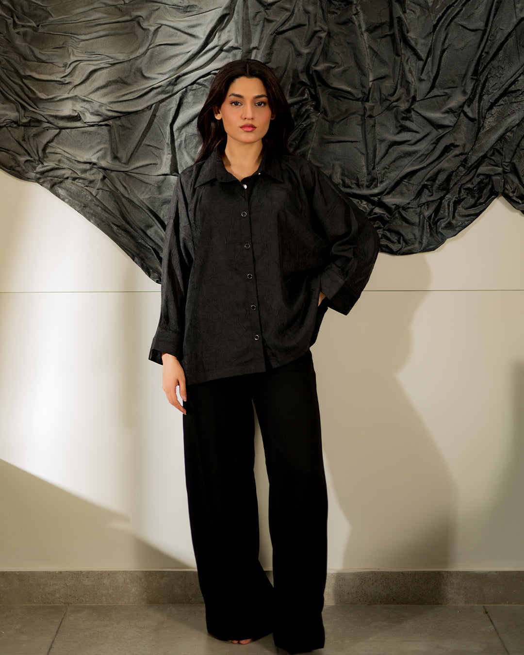 Bold and versatile, the Carbon Textured Shirt is crafted in deep black with a subtle textured finish that adds depth and character. Its relaxed silhouette and structured design make it a perfect balance of modern edge and timeless elegance. A wardrobe essential for statement-making minimalism.